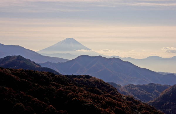 大月の北側の山からカラマツ林越しに富士山を撮ろうと出掛けたのですが、残念ながら林道が崖崩れで閉鎖されていました。