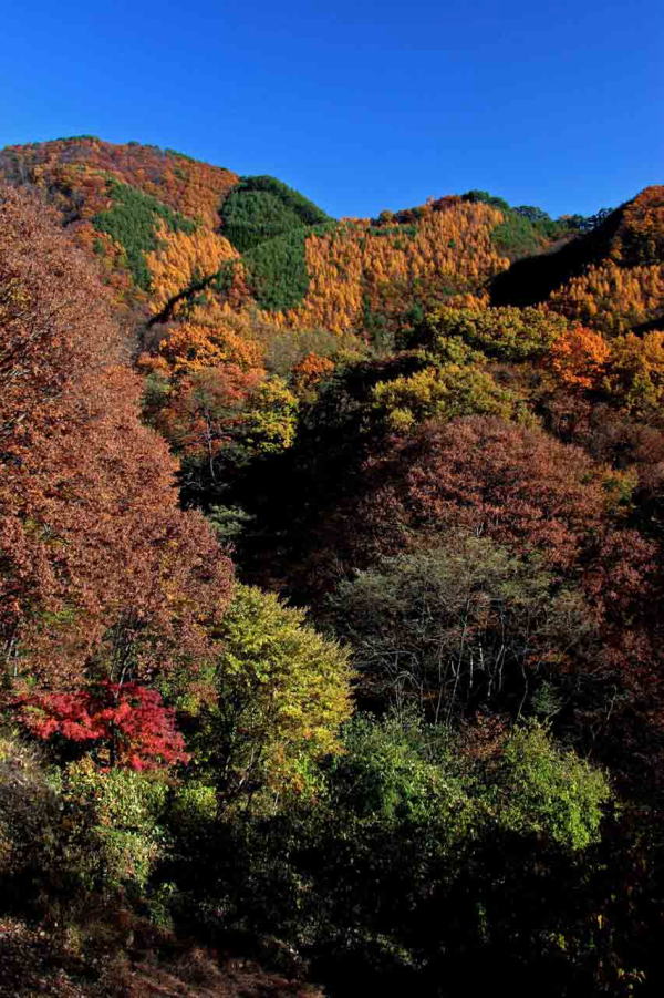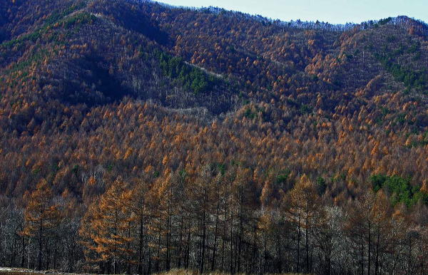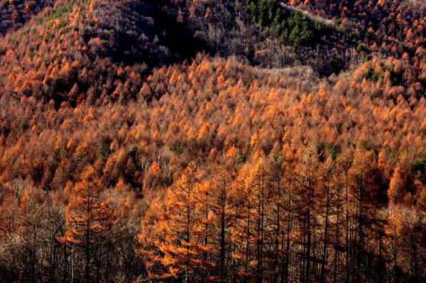 ![]() 午後の日差しを浴びて金色に輝く唐松 |