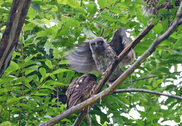 今年もアオバズクには楽しませてもらいました。多分、近々後ろの森に隠れてしまうので、今シーズンは見納めかも知れません。 3羽目のちびちゃんにはまだ合えていないので、しばらくは暇を見て覗きに行くつもりですが。