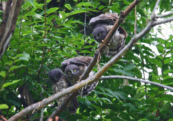 | 200枚強撮って、4羽同時に目を開けているのはたった3枚でした。 それでも、昨年撮れなかった家族写真をゲットでき幸運でした。 あとは、もう1羽居るはずの3番目の幼鳥の姿が見えないのが気になります。 |