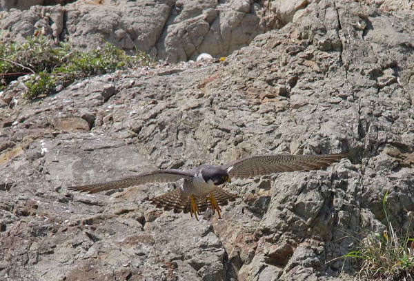 ![]() そんなハヤブサ夫婦の行動を気にも留めず、イソヒヨドリのオスがのんびり休んでます。 |