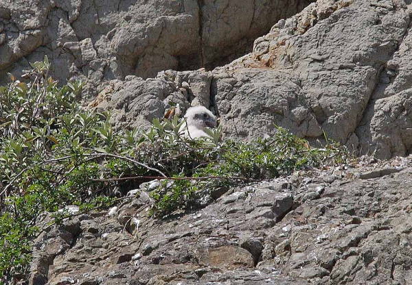![]() メスが捌いた餌を掴んで給餌に戻りました。 |