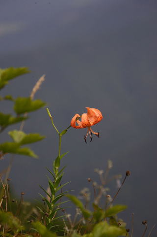 崖に咲いていたオニユリです。向こうの山がガスの先にぼんやり見えます。