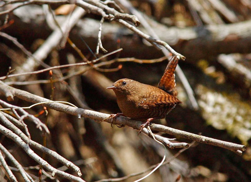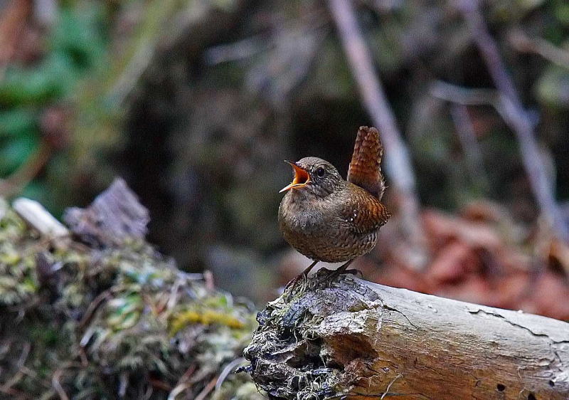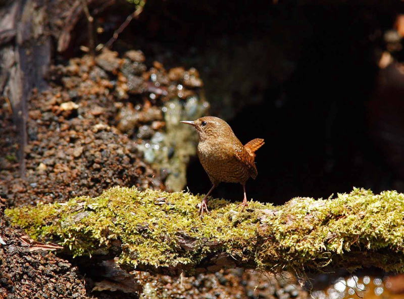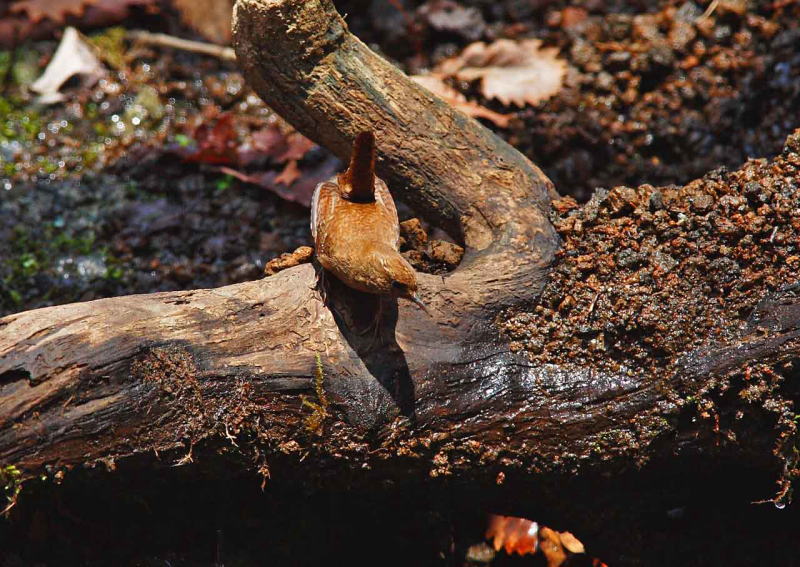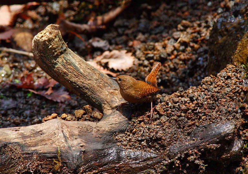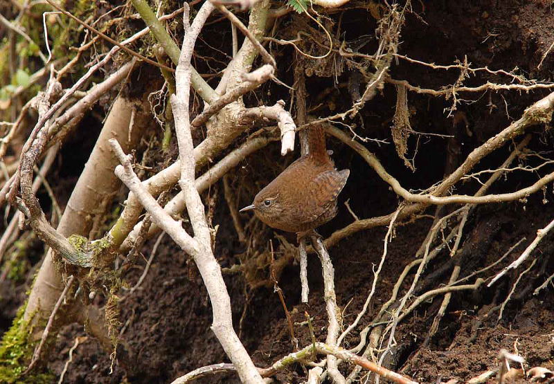 | 倒木の根に巣を作ることが多く、保護色みたい(何弁?)で写真で引き立たせるのが難しい鳥さんです。 |